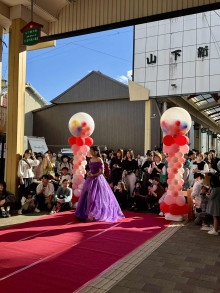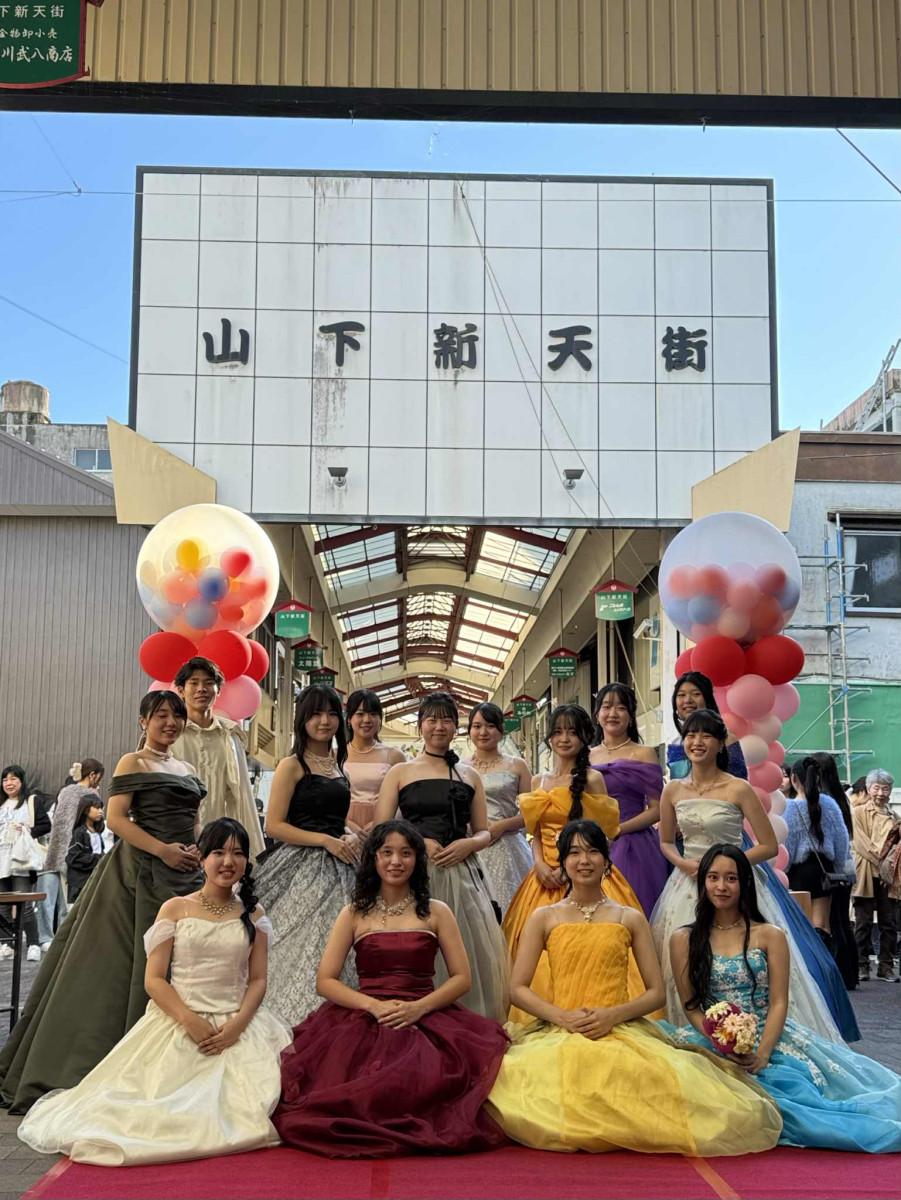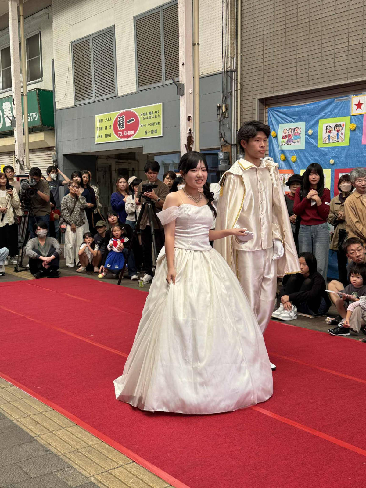 宮崎県立延岡工業高校の生徒たちが11月9日、延岡の山下新天街で自作のドレスを着てレッドカーペットを歩くファッションショーが行われた。