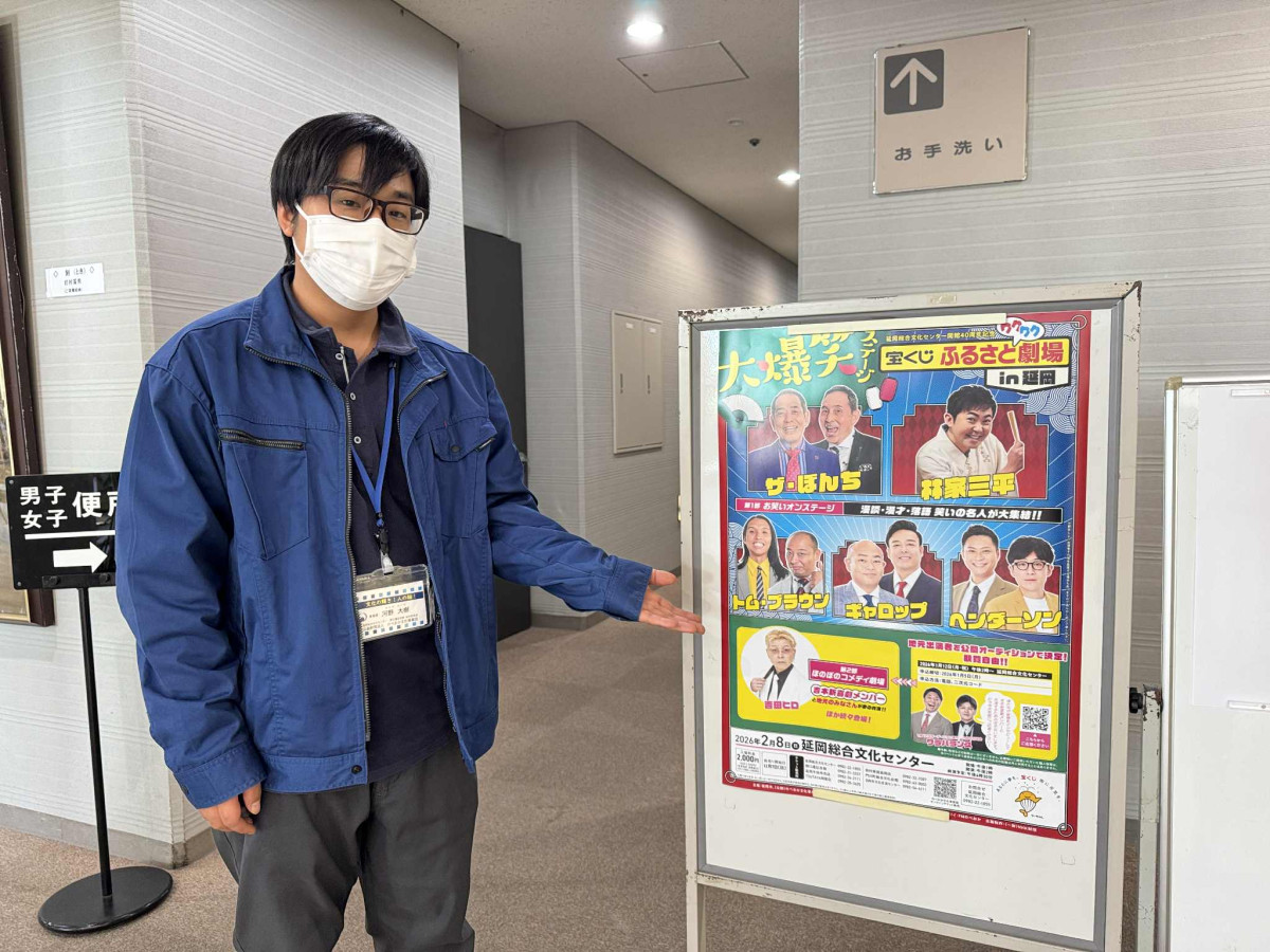 来場を呼び掛ける「のべおか文化事業団」の河野大樹さん
