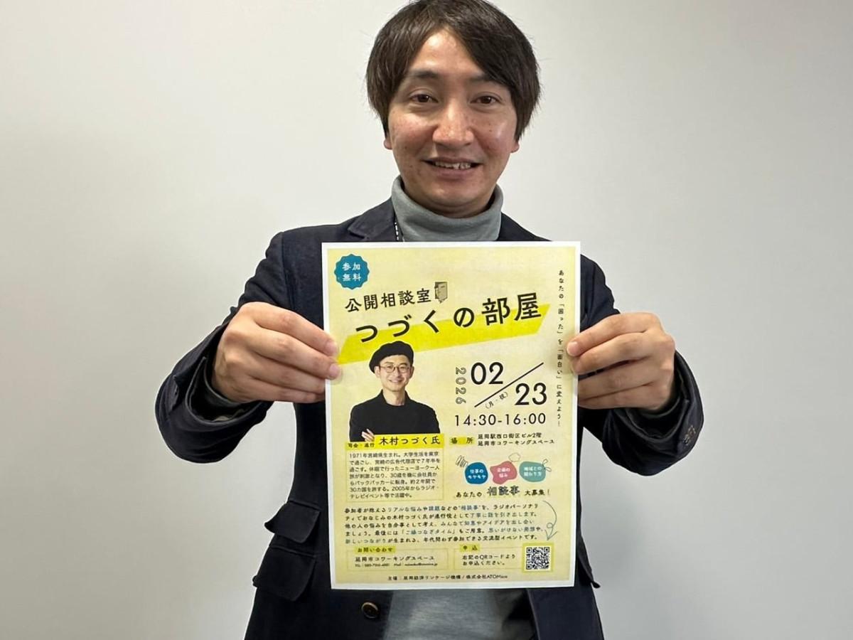延岡駅西口街区ビル2階の延岡市コワーキングスペース(延岡市幸町3、TEL 080-7314-4881)で2月23日、タレント・木村つづくさんらが相談に乗る「つづくの部屋」が開催される。