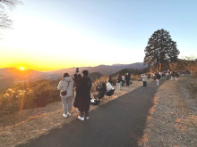 標高513mの国見ヶ丘は、雲海の名所として知られ、熊本県にある阿蘇五岳や宮崎県、大分県、熊本県の3県にまたがる祖母連山など、大パノラマが楽しめるスポット。この日は初日の出を見ようと地元の人だけでなく、県外の人まで約250人が集まった。気温マイナス2度の中、7時23分ごろ延岡方面の山から日が上がり、雲一つない空がオレンジ色に染まり始め、5分後にははっきりと初日の出を見ることができた。
