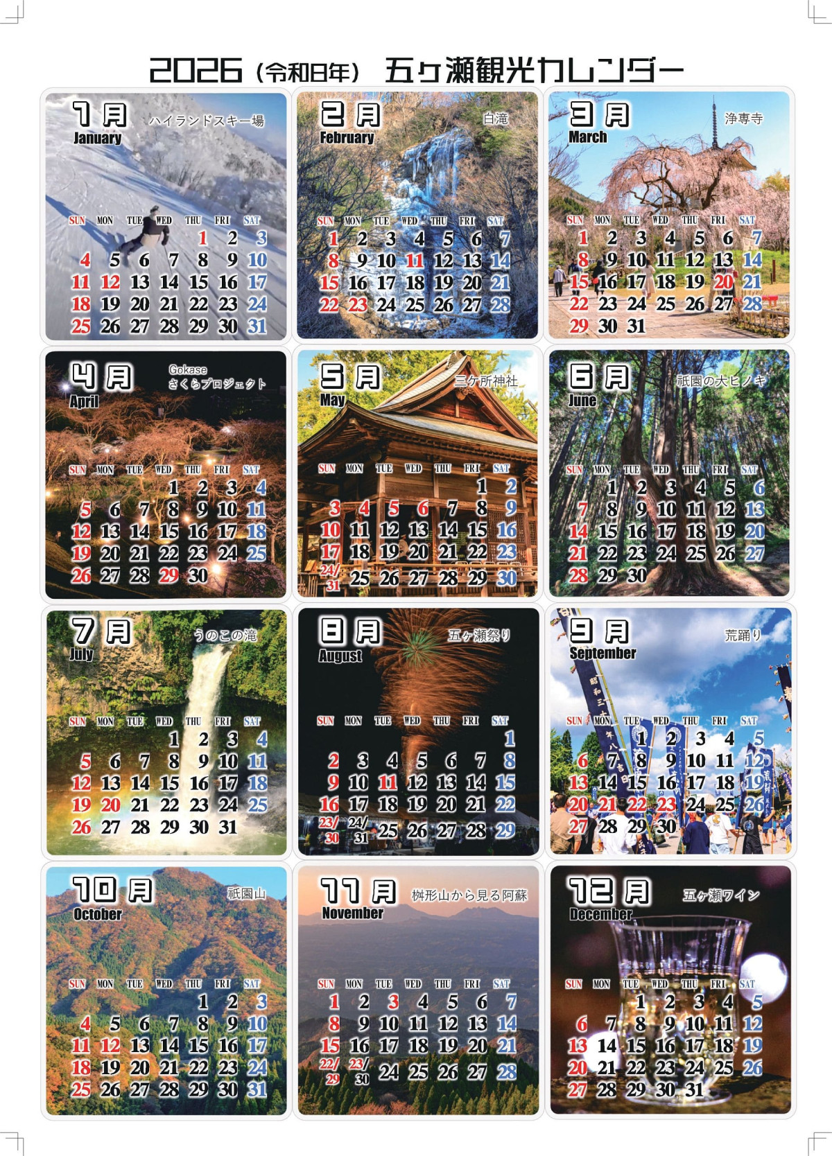 ごかせ観光協会(五ヶ瀬町三ヶ所)が1月16日、「2026年版五ヶ瀬観光カレンダー」の販売を始めた。