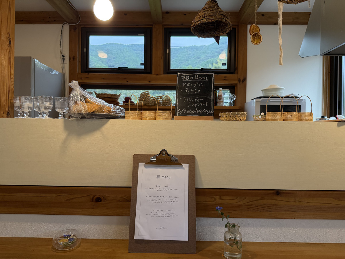 カウンターの様子。窓から見える山の景色は永目さんおすすめ