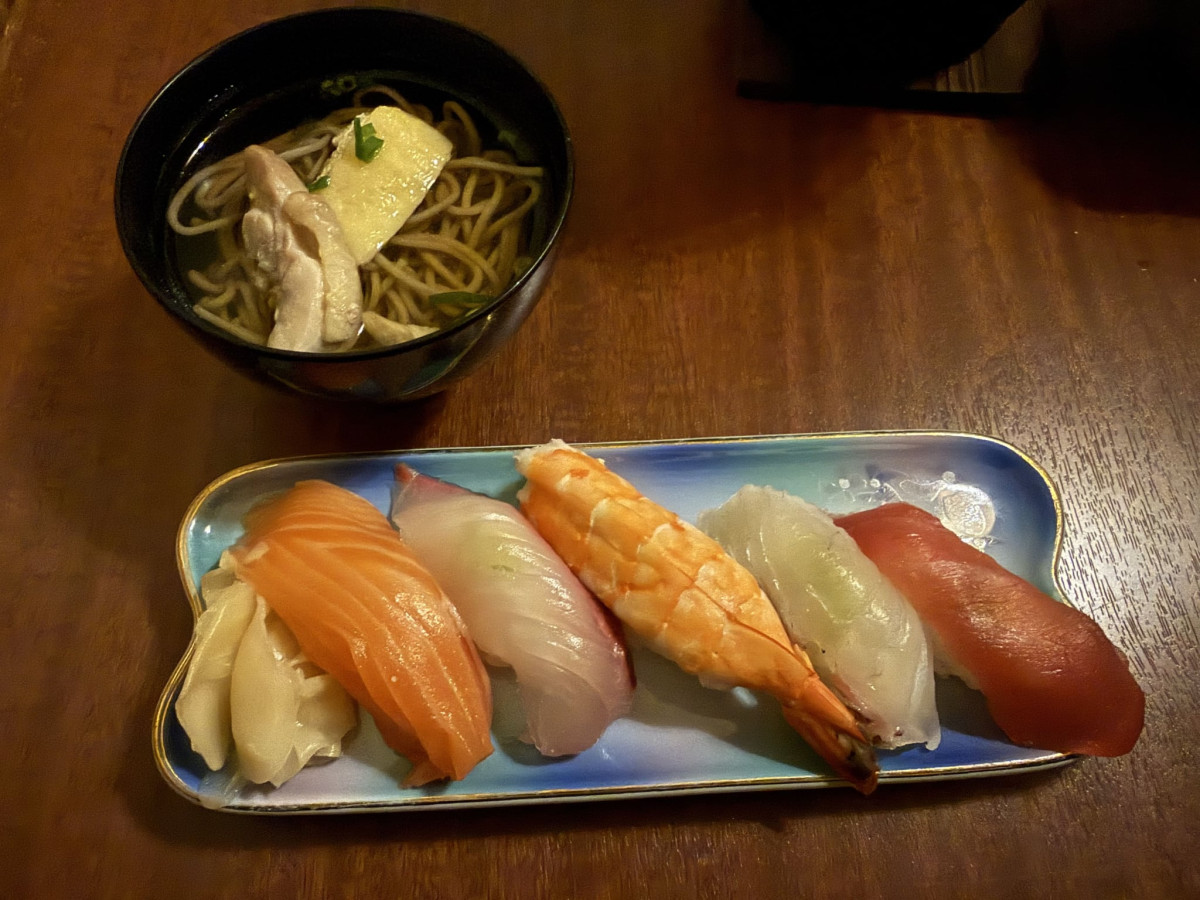 コース料理のにぎりずしとそば(1人分)