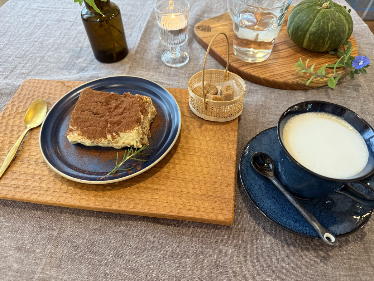 「ティータイムセット」の「ティラミス」と「カフェラテ」