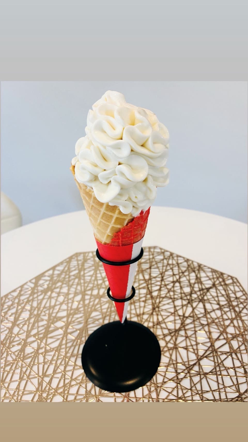 形が特徴的な「濃厚ミルクソフト」(写真提供=くまりんご)