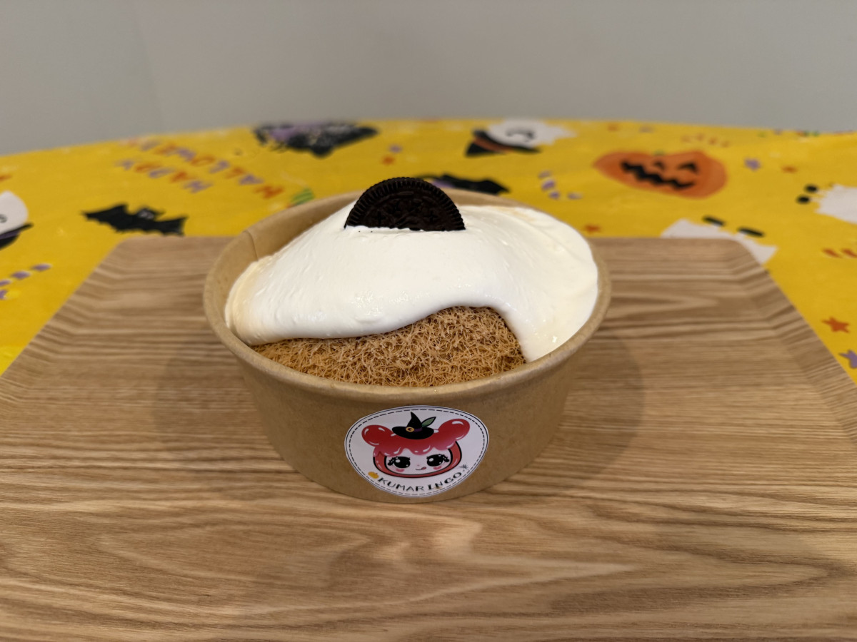 かき氷ふわ雪の「キャラメル」。「ストロベリー」は子どもに人気