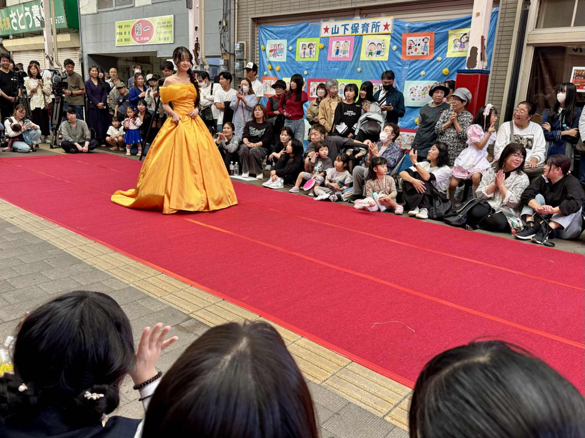 宮崎県立延岡工業高校の生徒たちが11月9日、延岡の山下新天街で自作のドレスを着てレッドカーペットを歩くファッションショーが行われた。