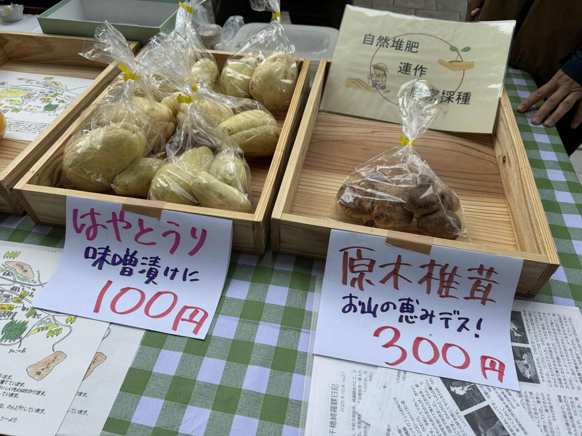 延岡オーガニックマルシェでハヤトウリや原木シイタケなどを販売