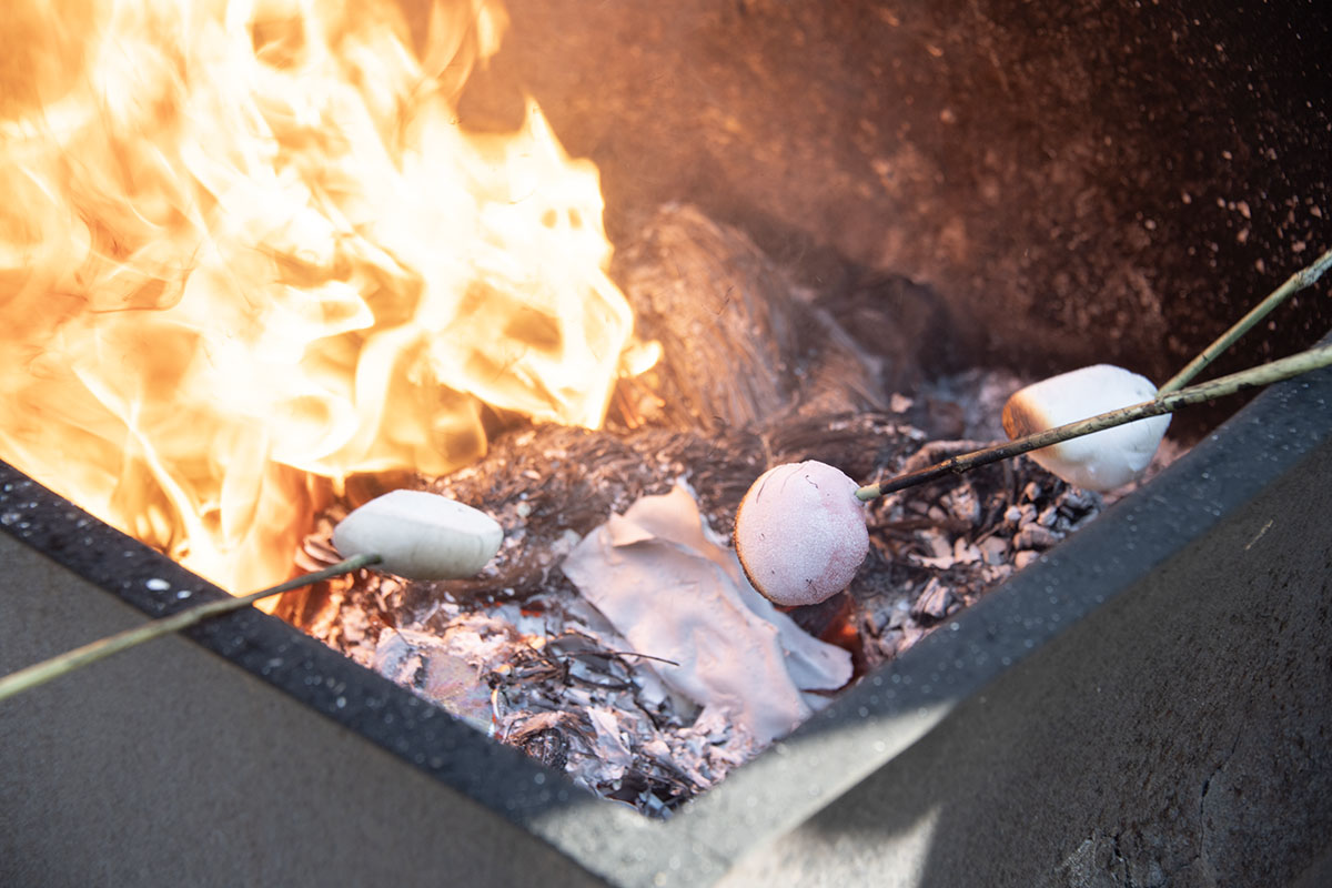 正月飾りや古いお守りなどをたき上げる小正月の行事「どんど焼き」が1月15日、日向の幸福神社(本町)で行われた。