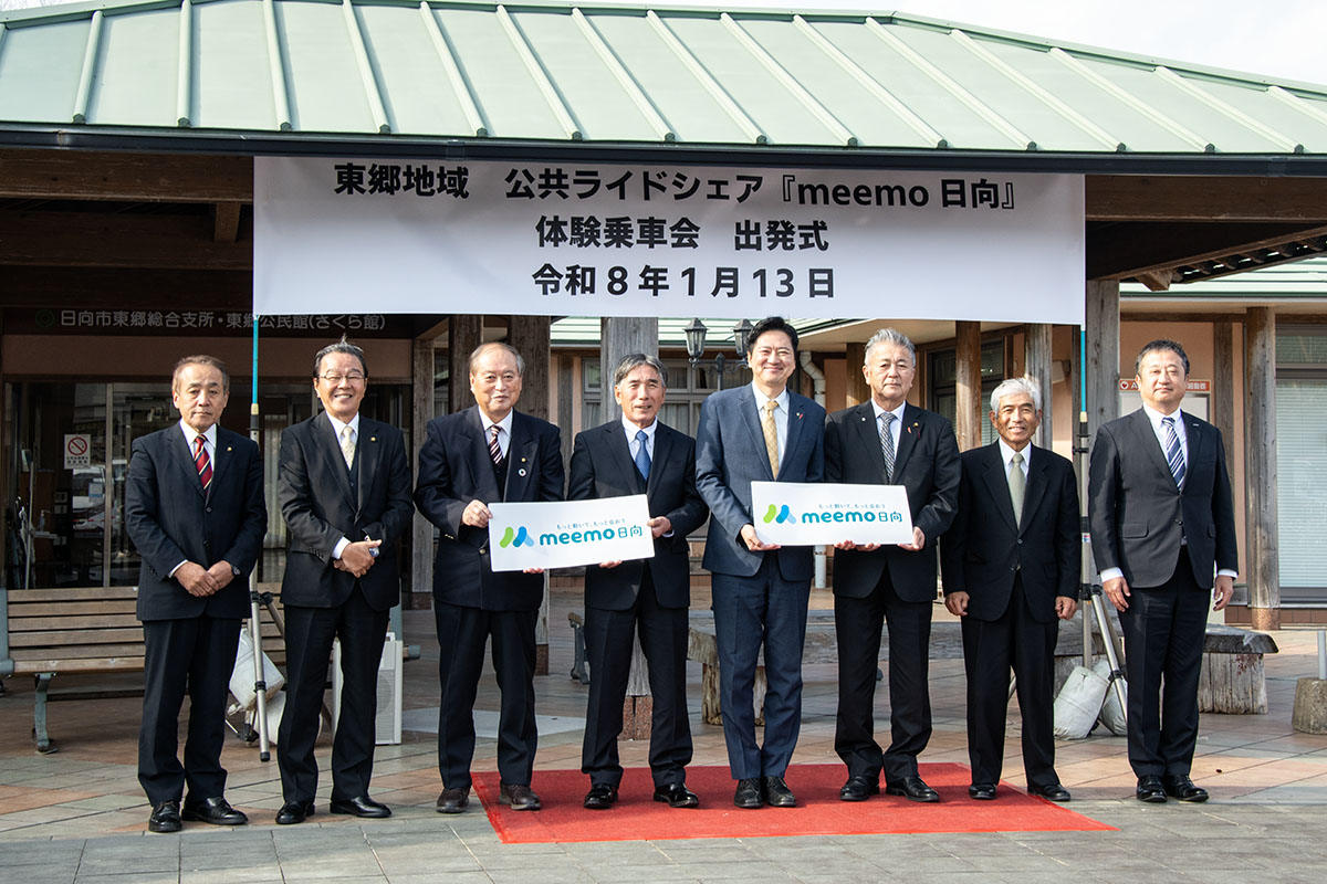 公共ライドシェアサービス「meemo(ミーモ)日向」の体験乗車が1月13日、日向市東郷町で始まった。