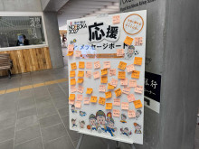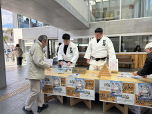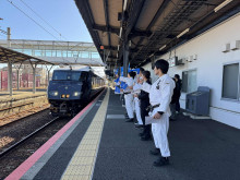 旭化成柔道部の選手たちが1月20日、延岡駅で6月に行われる「全日本実業柔道団体対抗大会」などのPRを行った。