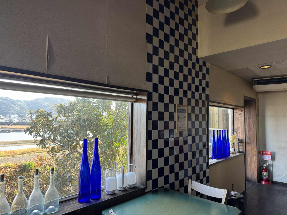 店内の様子。店は大瀬川の安賀多橋のたもとにある