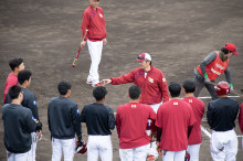 宮崎・日向のメディキットスタジアム(日向市財光寺)で2月14日、東北楽天ゴールデンイーグルス2軍のキャンプイン歓迎セレモニーが行われた。