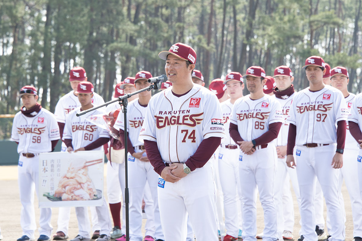 宮崎・日向のメディキットスタジアム(日向市財光寺)で2月14日、東北楽天ゴールデンイーグルス2軍のキャンプイン歓迎セレモニーが行われた。