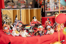 「旧矢野家」にはおひなさまとお内裏さまを囲んでうたげを行う様子を再現したひな飾り