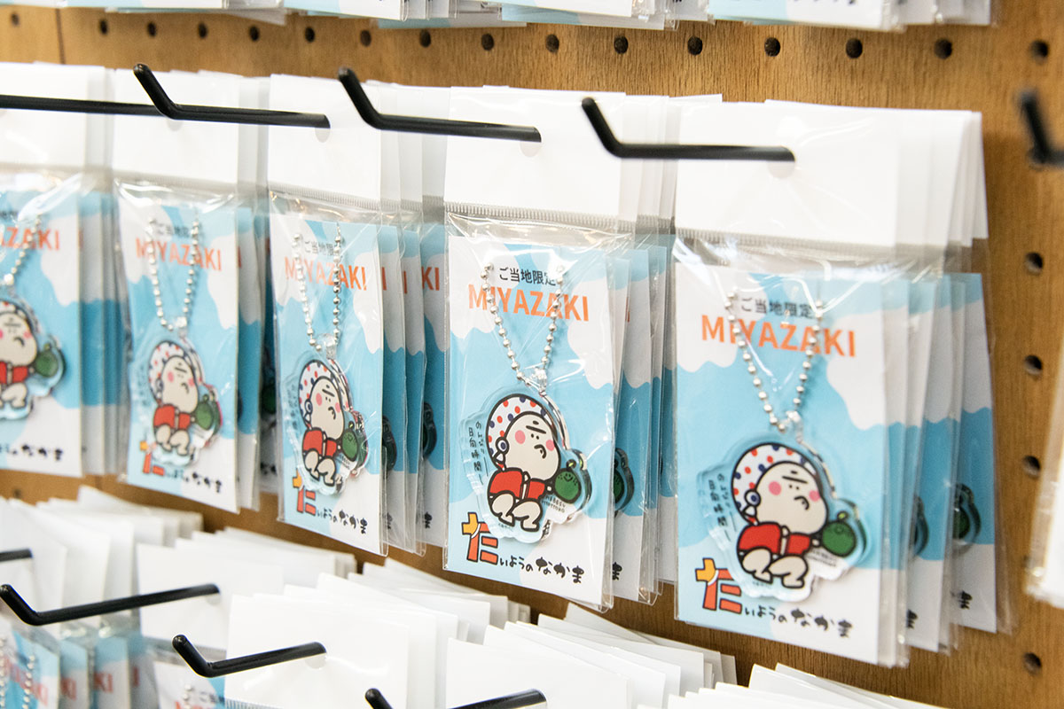 芥川さんがデザインしたキーホルダーやタオルなども販売する