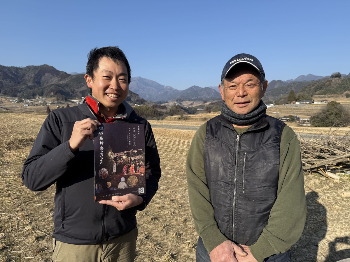 (左から)棚田夜神楽実行委員の福島優さんと福原良治さん